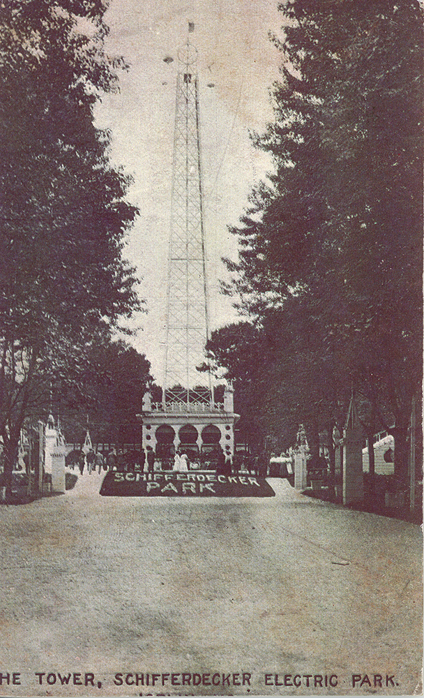 Originally the site of a dairy farm during the 1890s, Charles Schifferdecker purchased this property in the early 1900s, then leased a portion of the land to three local businessmen for the development of Electric Park. The park featured rides, sideshows, animals, musical entertainment, concessions, and souvenir stands. Architect John H. Stem, a Kansas City and Newark amusement park designer, selected a distinctive Moorish style for the Joplin site. The theme park represented the new era of electricity as thousands of electric lights draped the structures and most park visitors arrived via electrically powered streetcars. Although the legend of the park prevailed long after it closed, the business operated a short period of time from 1909 to 1912.