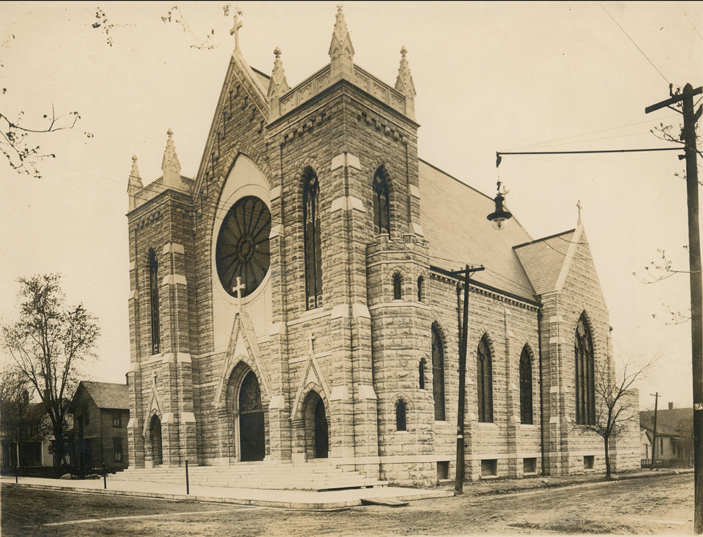 Edward Zelleken provided funding to build St. Peter’s Church. The Zellekens were devoted members of the church. Charles Schifferdecker purchased the large round stained glass window that hangs over the front entrance. This impressive art glass window allows the morning sun rays to bathe the 1,000-seat sanctuary and main altar. Constructed in 1906, the Gothic Revival style St. Peter the Apostle Catholic Church was designed by Joplin architect Austin Allen for $50,000.